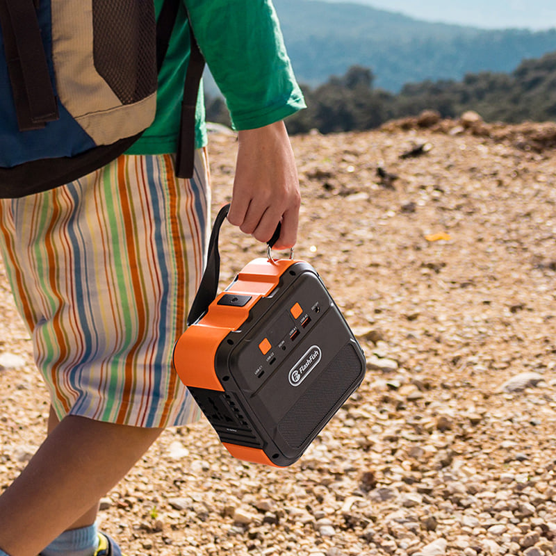 With small size (6.2 x 6.2 x 3.5in) and lightweight (1.25kg), FlashFish 120W power station isthe lightest portable power Station under 100Wh.t also equipped with a convenienthanging rope, makes it easy to hang on your backpack, or carry around for outdooradventures such as tent camping, road trip, backyard camping, etc.