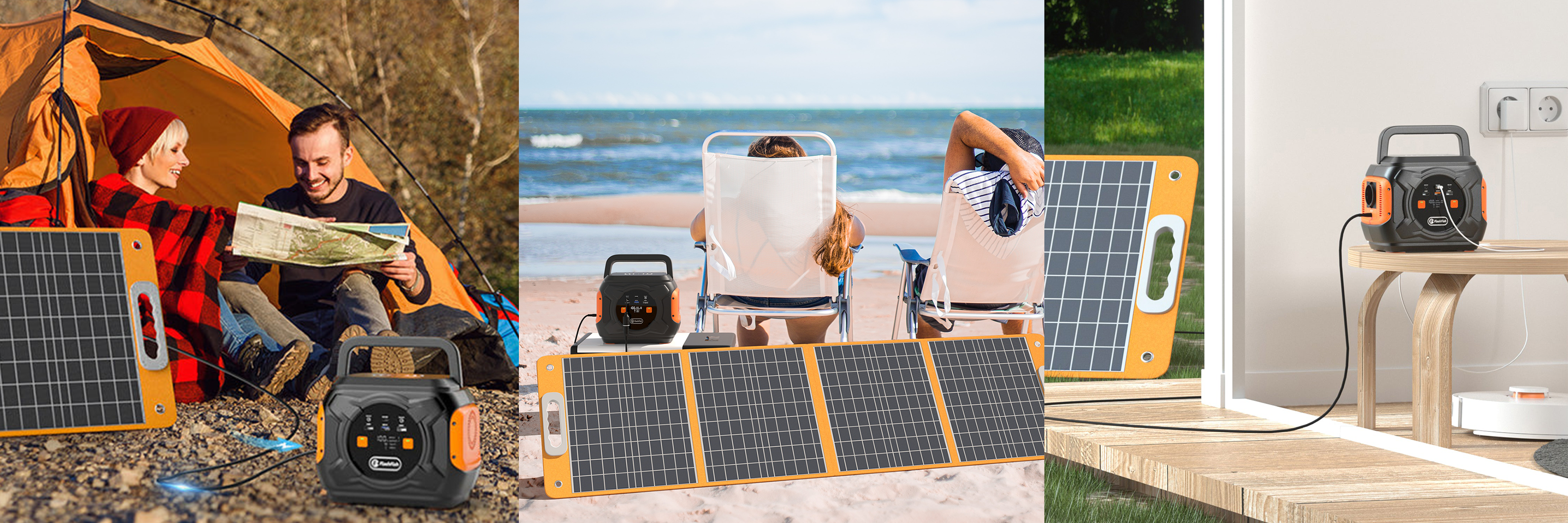 Using the FlashFish TSP100 portable solar panel 100W and PD uSB-C to charge A301 atthe same time, fastest charging from 0 to 95% only 1.5 hours. (Recharging time may variesfrom different location, temperature, weather etc.)